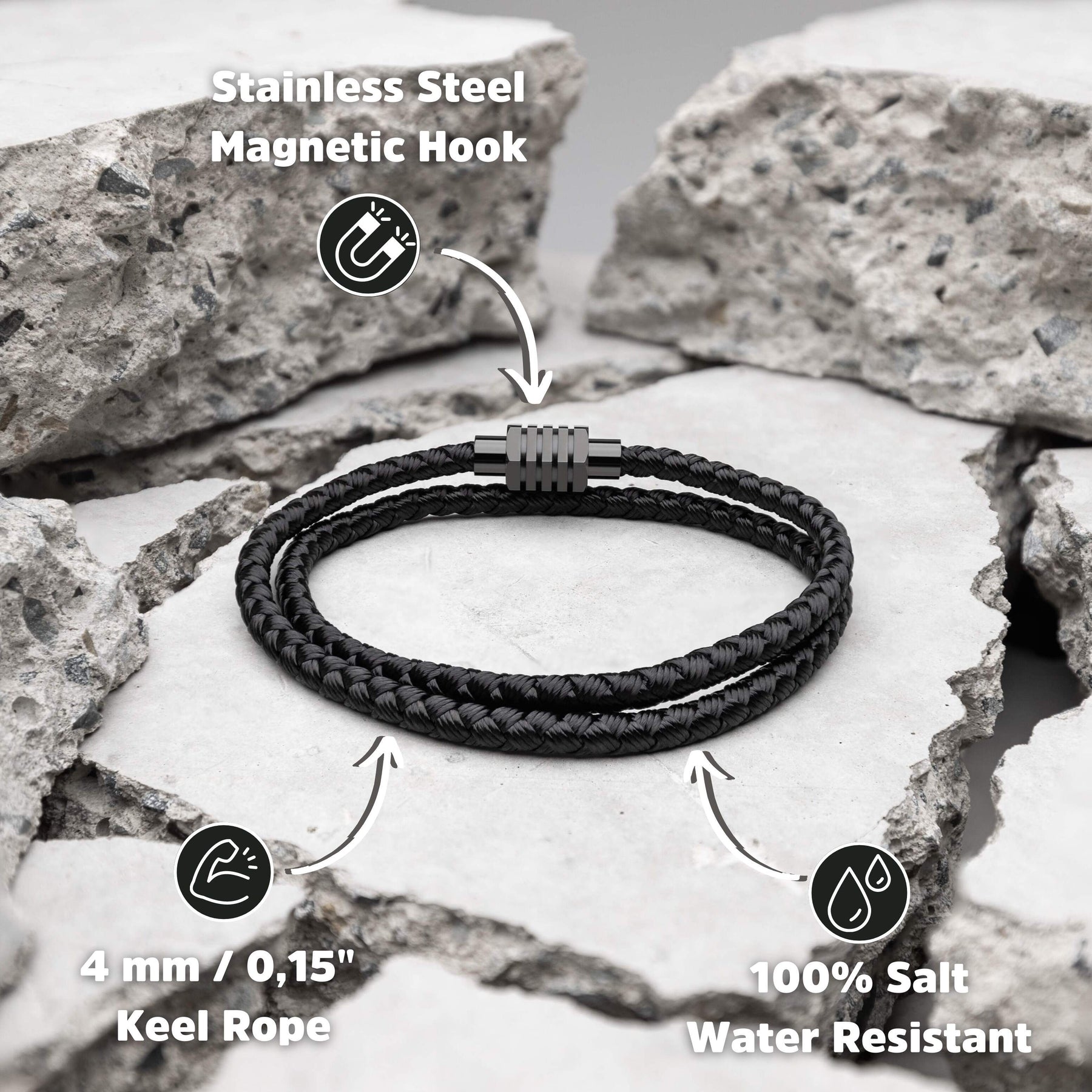 Wykonane z 4mm / 0,15" czarnej liny kełowej.